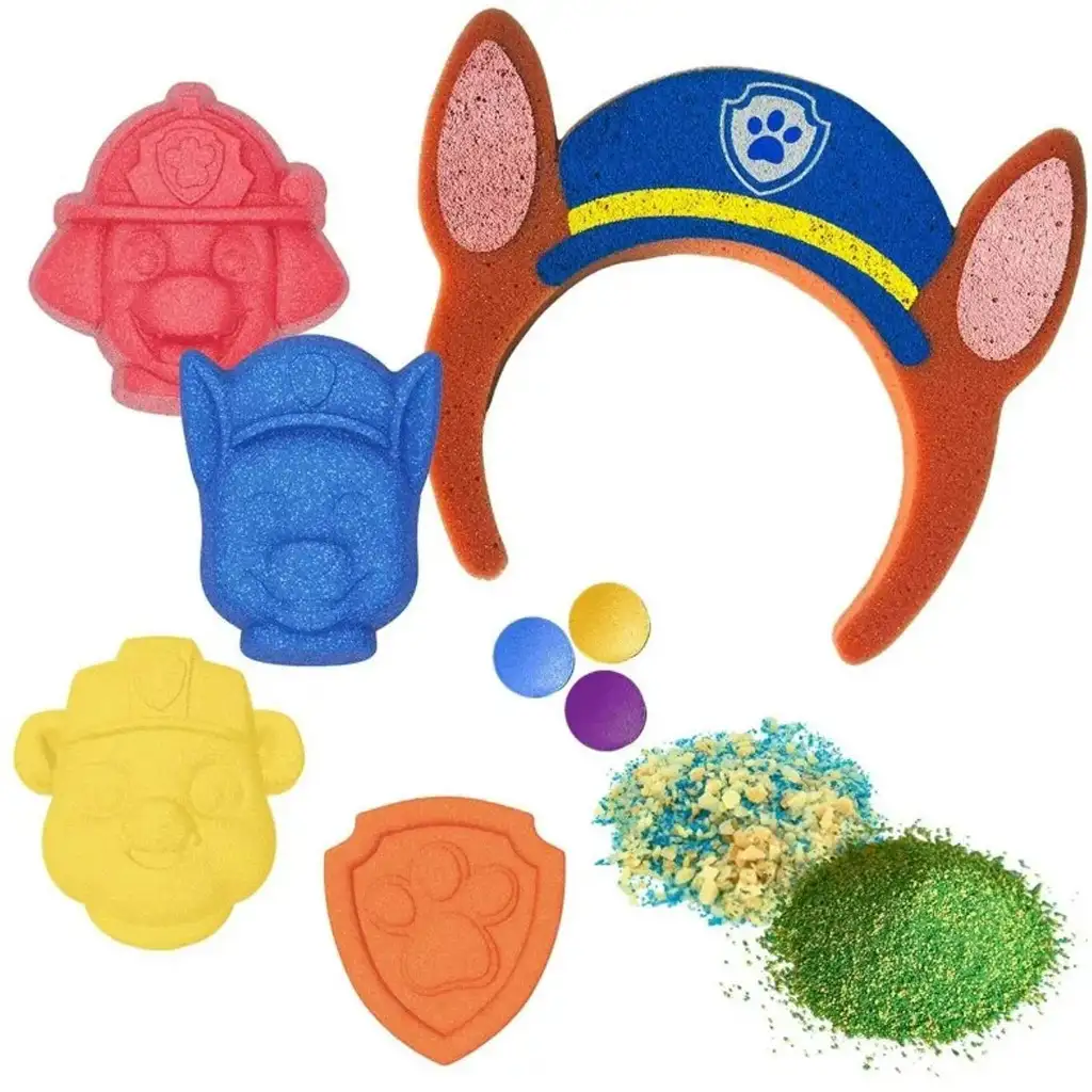 Set skriva razna iznenađenja: bombe za kupanje u obliku likova, soli za kupanje, pjenušave kuglice, kao i super cool traku za glavu od pjene s Chaseovim ušima – kako bi se dijete moglo osjećati kao pravi mali spasilački pas! Među šest različitih aroma nalaze se mirisi banane, jagode, šećerne vate, vanilije i mnogi drugi, tako da će svako kupanje biti novo iskustvo.