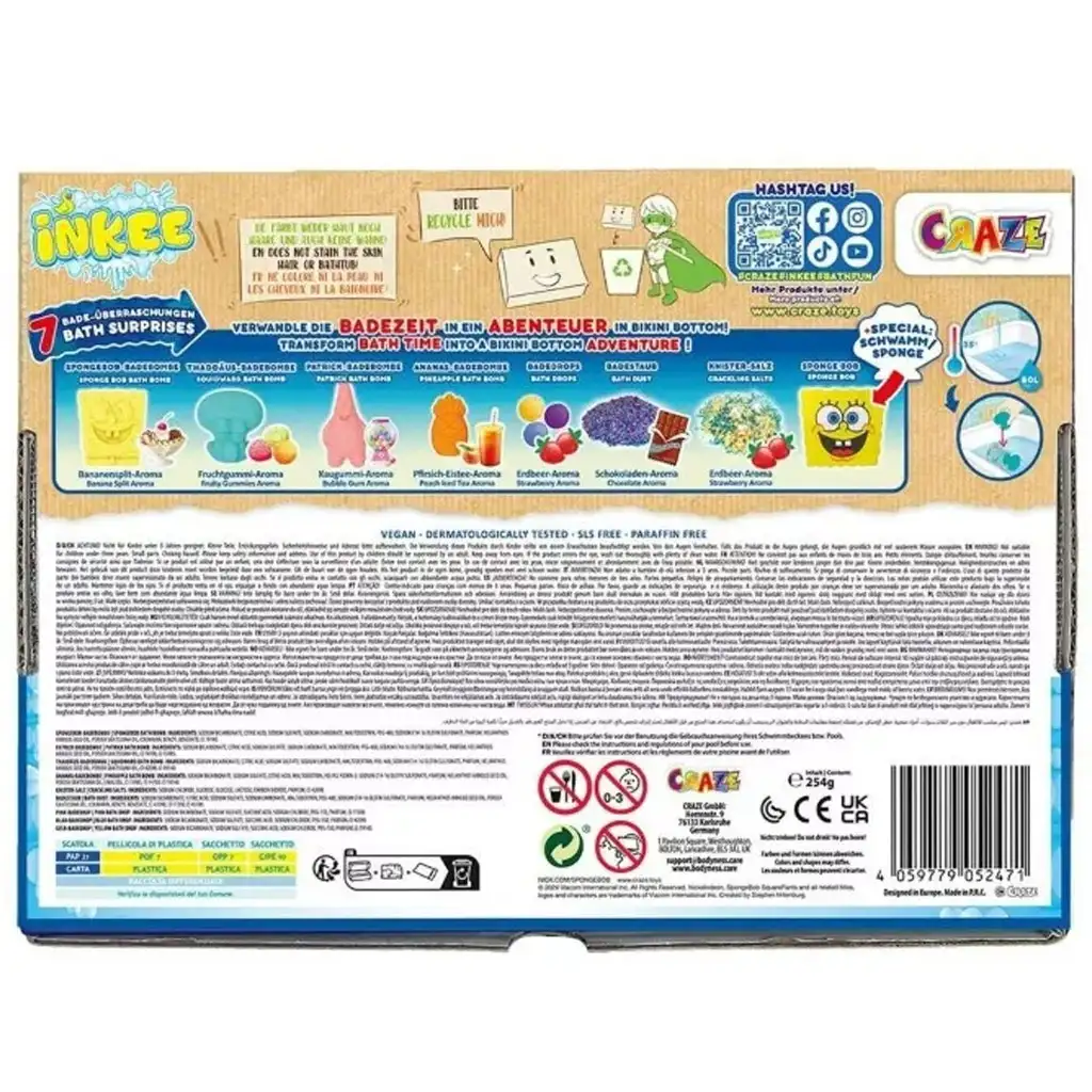 Kutija je izrađena od recikliranih materijala, proizvod je bez mikroplastike, SLS-a, glutena i parafina, tako da možete biti sigurni da su okoliš i koža vašeg djeteta sigurni. Spužva za kupanje s motivom Spužva Boba kao poseban poklon dodatno će uljepšati večernje kupanje.