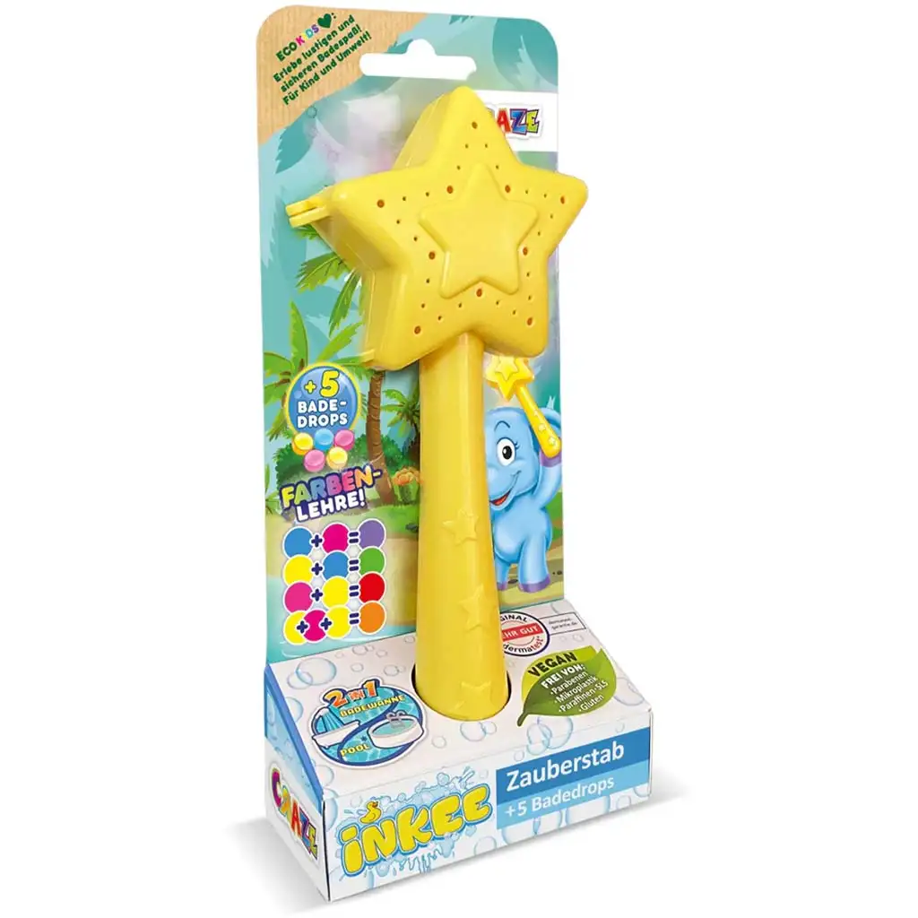 Želiš li čarobno kupanje s čarobnim štapićem? Inkee čarobni štapić pretvara kupanje u pravo iskustvo! Ovaj štapić u obliku zvijezde nije samo zabavna igračka, nego i prava šarena čarolija, jer skriva 5 veganskih tableta koje se otapaju u vodi za kupanje. Šarene tablete umetnute na kraj štapića stvaraju čarobnu igru boja kad dođu u kontakt s vodom, dok dijete upoznaje osnove miješanja boja – učenje i zabava u isto vrijeme!