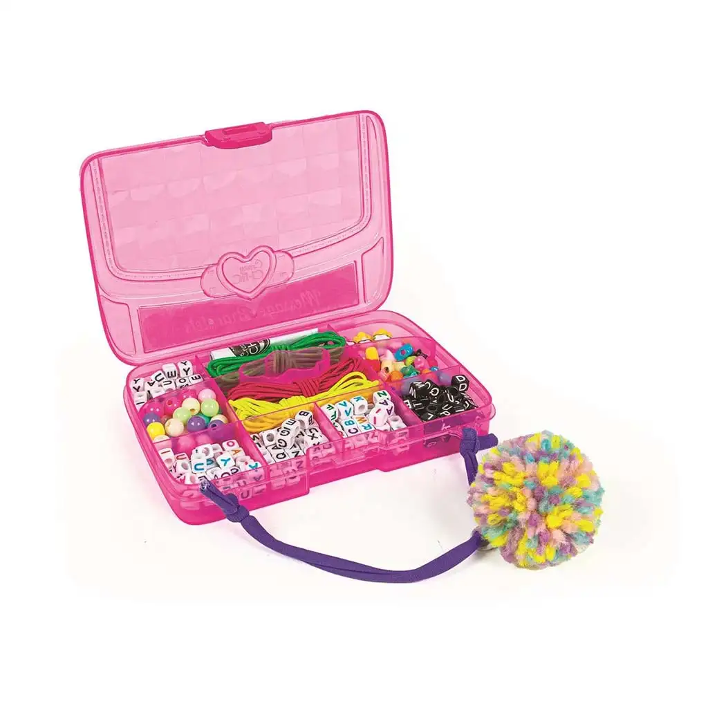 Uz pomoć seta djeca mogu ispisivati vlastite poruke, imena ili inspirirajuće riječi na narukvicama, zbog čega će svaki komad biti jedinstven i osoban. Kutija se lako prenosi, što je čini idealnom za putovanja, a zahvaljujući praktičnoj ručki možete je ponijeti bilo kamo sa sobom. Kreativna igra razvija finu motoriku, koncentraciju i maštu, dok ujedno pruža zabavu.