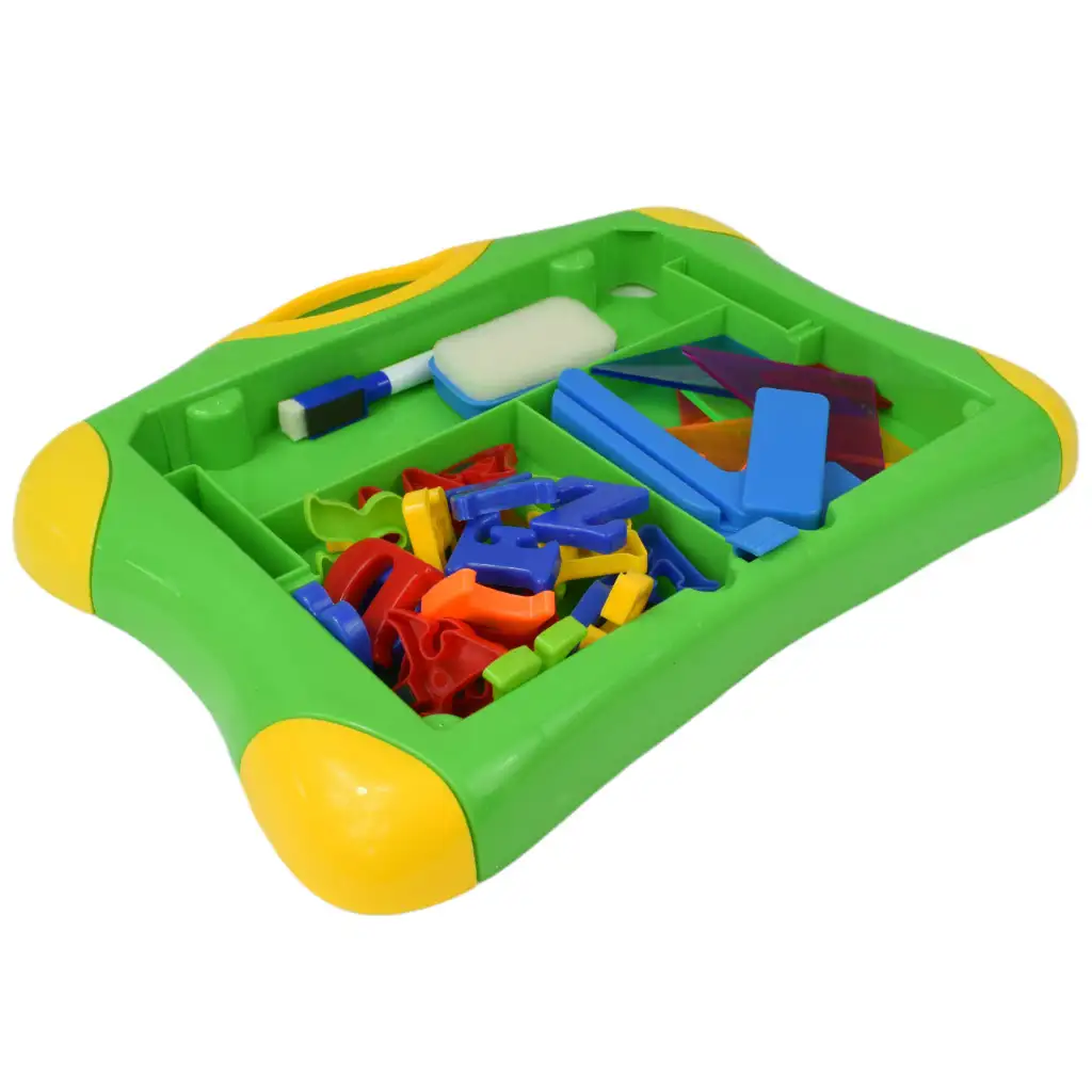 Među očaravajućim značajkama nalazi se magnetska ploča za crtanje sa slovima, koja se lako može pričvrstiti na površinu, bijela ploča koja postaje dom za crteže i pisanje, kao i magnetsko pričvršćivanje, što olakšava proces igre i stvaranja. Pomoću priloženog markera i brisača, djeca mogu lako izbrisati i ponovno napisati svoja djela.