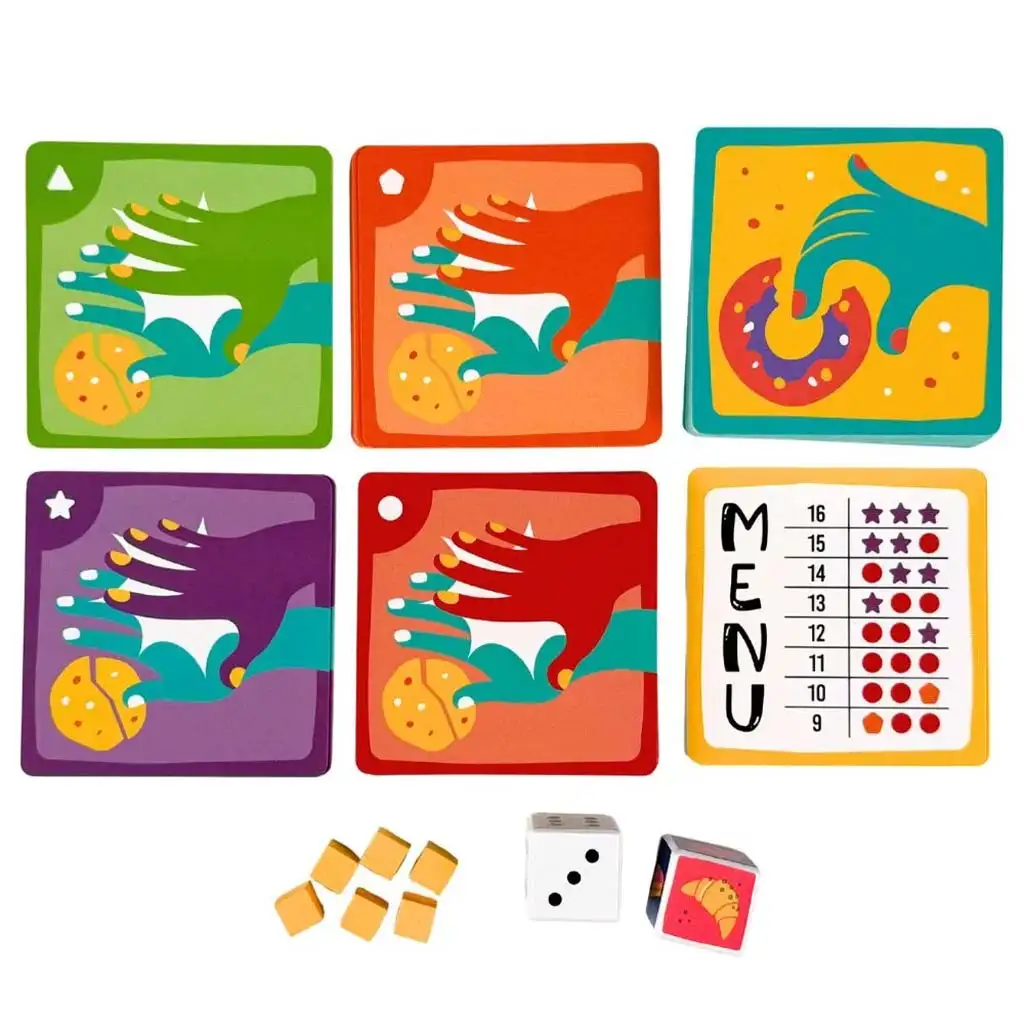El a kekszekkel! je zaista brza i vesela društvena igra refleksa koja će zasigurno oživjeti svaku obiteljsku ili prijateljsku večer igranja. Prema priči, neodoljiv miris svježe pečenih peciva sve mami u pekaru, ali samo onaj tko je najbrži i ima najoštrije oko može biti pobjednik. Tijekom igre dvije kocke određuju na koju karticu treba "udarcem" reagirati, no zadatak nipošto nije tako jednostavan. Kako igra napreduje, sve više pravila i ograničenja dolazi na snagu, što zahtijeva stalnu pažnju i brze odluke. Ponekad je važna boja peciva, drugi put njegov oblik, ili pak to, na koje se kartice ne smije dirati. Zahvaljujući prilagodljivoj težini, i mlađi i stariji mogu zajedno uživati, pa tako igra pruža uzbudljiv izazov za sve generacije. Ako želiš da se tvoje dijete igrajući razvija u brzini reakcije i koncentraciji, ova igra je pravi pogodak.