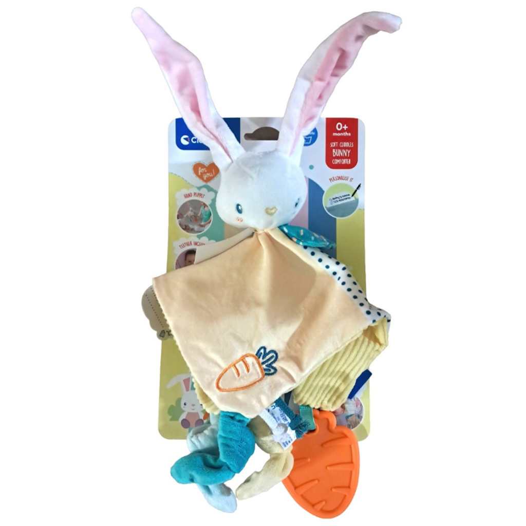 Clementoni Baby utješna igračka s zečićem idealan je izbor ako želite umiriti i pružiti osjećaj sigurnosti svojem mališanu već od rođenja. Mekani, ugodni materijal nježno prianja uz bebinu kožu, dok preslatki lik zečića postaje prijatelj u svakodnevnom životu i pri uspavljivanju. Različite teksture i dio s grizalom pomažu u razvoju osjetila te mogu ublažiti neugodnosti koje prate nicanje zubića. Zbog laganog dizajna beba ga lako može držati i nositi sa sobom kamo god ide. Idealno za spavanje, umirivanje ili putovanja.