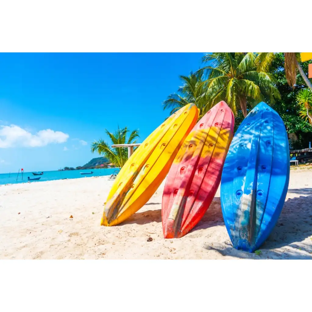Ponesi kući ljetni morski ugođaj s dijamantnom slagalicom Surf daska! Ovaj dijamantni set za slikanje veličine 40x50 cm prikazuje sunčanu plažu s tri živopisne surf daske – žutom, crvenom i plavom – koje u hladu palmi čekaju na valove. Svaki detalj slike priziva ljetni odmor i bezbrižne trenutke – savršen izbor ako želiš unijeti malo ljetnog raspoloženja u svoj dom.