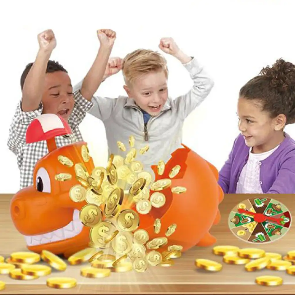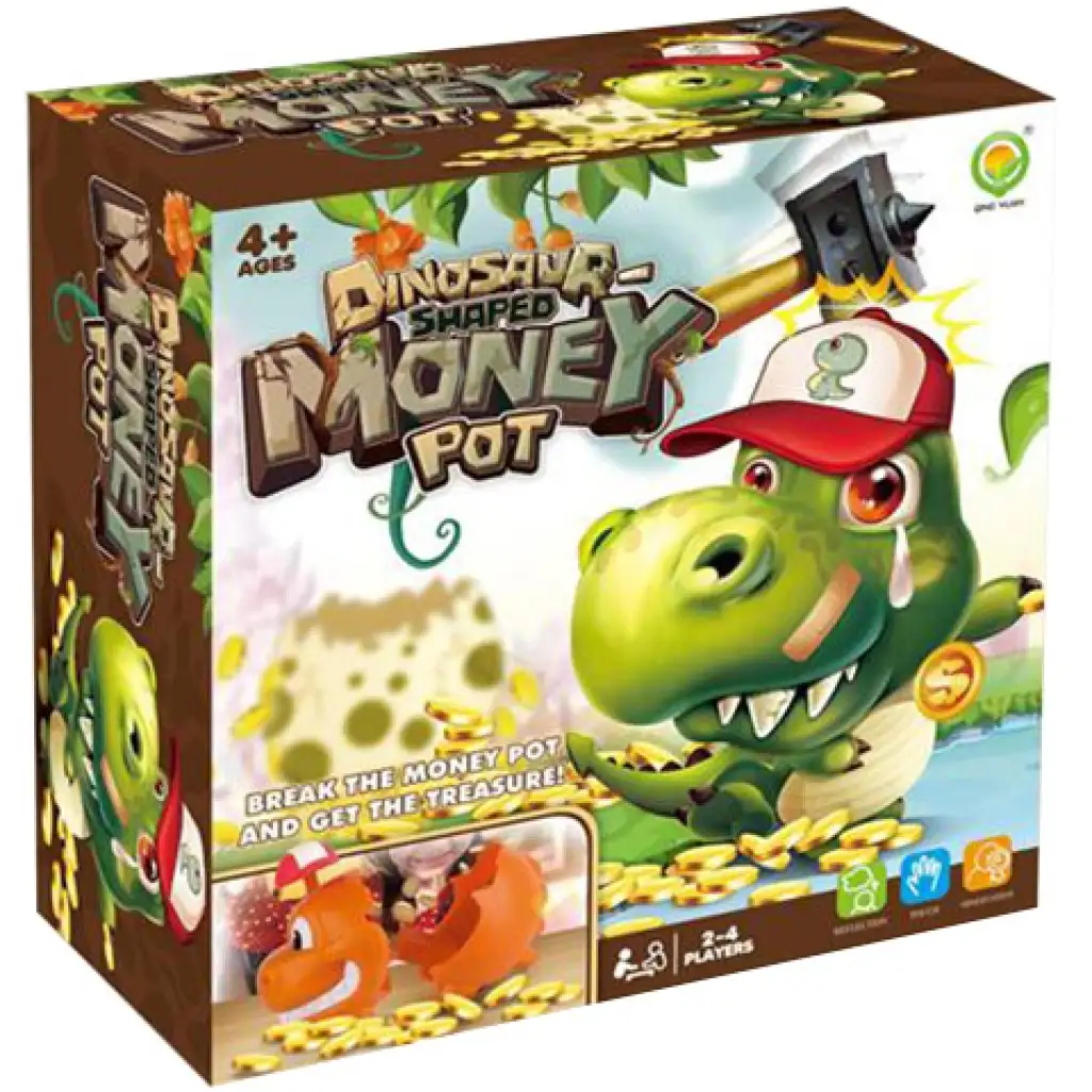 Skupi novac u kasicu dinosaura, razbij je i osvoji sve zlatne novčiće! Ova super društvena igra pruža uzbudljivu zabavu za do četiri igrača, a tvoje dijete može igrati zajedno s obitelji ili prijateljima i osvojiti zlatne novčiće. Igra je vrlo jednostavna, igrači se naizmjenično okreću i izvršavaju zadatak koji su dobili. U setu igre nalazi se i plastični čekić za razbijanje kasice dinosaura.