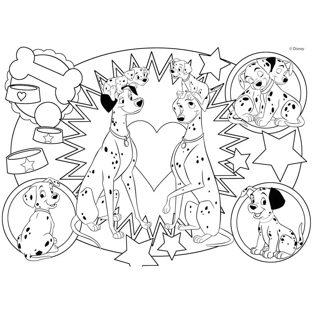 Šarena pozadina slike i dobro poznati likovi – Pongo, Perdita i nestašni štenad – podsjećaju na uzbudljive pustolovine, koje djeca mogu ponovno doživjeti i osmisliti prema vlastitoj mašti tijekom bojanja. Igra istovremeno pruža opuštanje i aktivnu zabavu, pa je idealan izbor za kod kuće, na putovanju ili kao poklon.