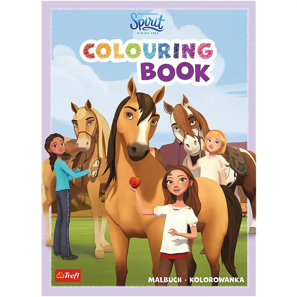 Otkrij divlji svijet prerija s Luckyjem, Spiritom i njihovim prijateljima! Ova bojanka, nastala prema popularnoj animiranoj seriji DreamWorksa „Spirit – Divlji i slobodan”, pravi je užitak za sve male ljubitelje konja. Bojanku izdavača Trefl ispunjavaju prizori koji govore o prijateljstvu, avanturama i slobodi, a djeca ih mogu dodatno učiniti čarobnima svojim vlastitim bojama.