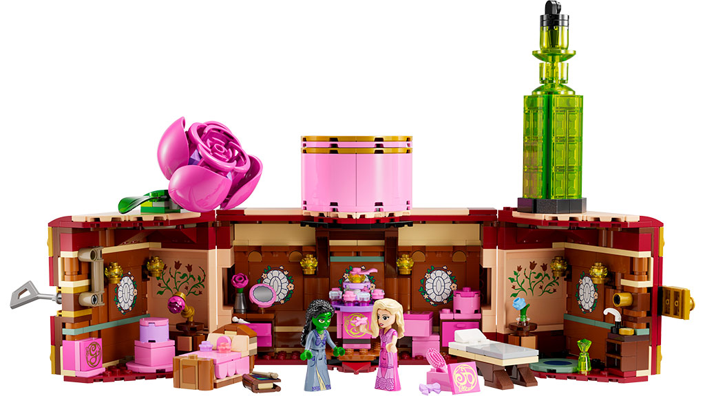Iako Glinda i Elphaba nisu nužno najbolje prijateljice na početku, djeca će sigurno postati najbolji prijatelji s LEGO Wicked Glinda & Elphaba Soba u Domu setom, koji se sastoji od 740 dijelova i čini kovčeg koji, kada se otvori, otkriva sobu djevojaka u domu. Ovaj set dolazi s QR kodom koji reproducira glazbeni video.