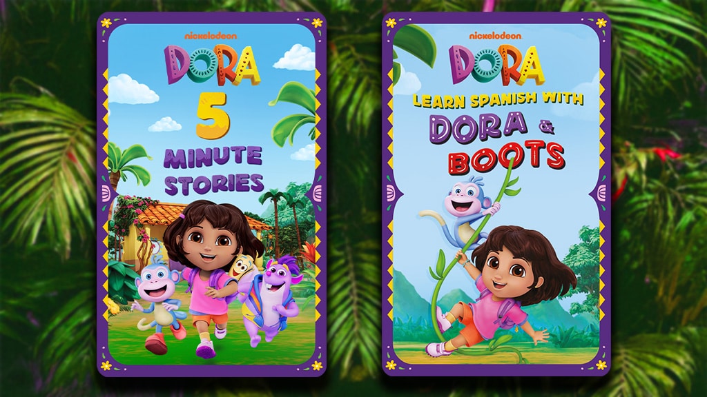 Ova kartica nudi 45 minuta čarobne avanture, koju je inspirirala popularna Nickelodeonova serija Dora. Sadrži sedam priča, od kojih je svaka petperces, és u kojima možemo doživjeti uzbudljive pustolovine Dore, Čizija (Boots), Velike Crvene Kokoši (Big Red Chicken) i mnogih drugih omiljenih likova. Ove priče ne samo da zabavljaju, već razvijaju dječju maštu i jezične vještine, dok zajedno sa svojim omiljenim likovima otkrivaju svijet.Ova kartica nudi 25 minuta dvojezične zabave. Inspirirana je popularnom Nickelodeonovom serijom Dora, te djecu uči popularnim riječima i izrazima iz serije, kao što je: "¡Vámonos! Idemo!". Kartica na razigran način pomaže usvajati osnove španjolskog i engleskog jezika, dok istovremeno razvija vokabular i jezične vještine. Idealan je izbor za svako dijete koje želi otkrivati svijet jezika, učeći uz svoje omiljene likove.