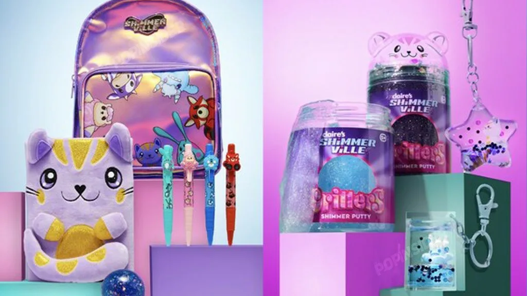 ShimmerVille nudi šarene male životinje i kućne ljubimce s kojima se sada možemo igrati i u stvarnosti. Obožavatelji ShimmerVillea mogu pronaći kolekciju u Clairesu koja sadrži pet mini plišanih figura koje dočaravaju kućne ljubimce iz online iskustva. Mini plišane životinje dolaze s posebnim QR kodom, tako da obožavatelji mogu otključati kućnog ljubimca u digitalnom obliku u ShimmerVilleu.U kolekciji se mogu pronaći i plišane bilježnice, pisaći pribor i olovke, mini ruksaci, privjesci za ključeve, kao i igračke inspirirane likovima iz ShimmerVillea. Među dodacima se mogu pronaći poznati prijatelji poput Icicruncha, Stuffya i Xingya.