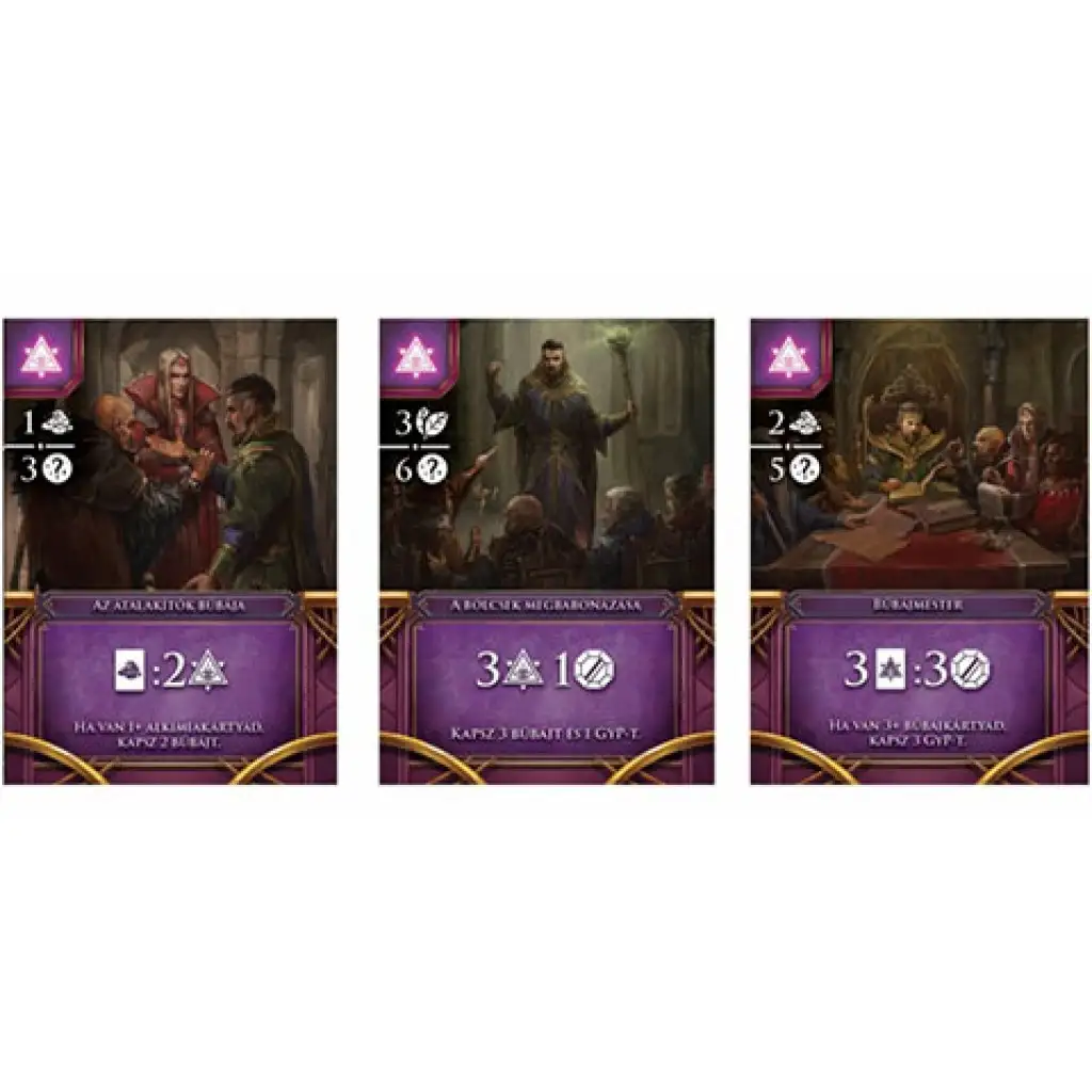 Doba čarobnjaka poziva najviše šest čarobnjaka da sudjeluju u natjecanju s ciljem stjecanja magičnih predmeta i stvaranja moćnih čarolija za stjecanje znanja i moći. Dok skupljaju svoje mistične relikvije, primjećuju prolazak mjeseca koji pojačava snagu određenih magičnih škola, omogućujući čarobnjacima da bacaju čarolije na vrhuncu svoje moći! U jednom krugu igrači biraju jednu kartu iz hrpe koja im je dodijeljena. Nakon što odaberu kartu, igrači predaju preostale karte u smjeru kazaljke na satu, a zatim odlučuju hoće li novu kartu dodati svom tablou ILI odbaciti kartu kako bi povećali svoje sposobnosti i učinkovitije bacali čarolije. Nasumično odabrani mjesečevi markeri govore igračima koju čaroliju mogu koristiti. Stoga je tempiranje izvođenja čarolija gotovo jednako važno kao i same čarolije. Karte pripadaju školama Čarolija, Biljnih znanosti, Krvne umjetnosti, Napitaka, Alkemije i Relikvija. U svakom krugu može se koristiti samo jedna vrsta čarolije, ovisno o nasumičnom redoslijedu za taj krug. Igrači zbrajaju svoje bodove nakon tri runde, a igrač s najviše bodova je pobjednik.