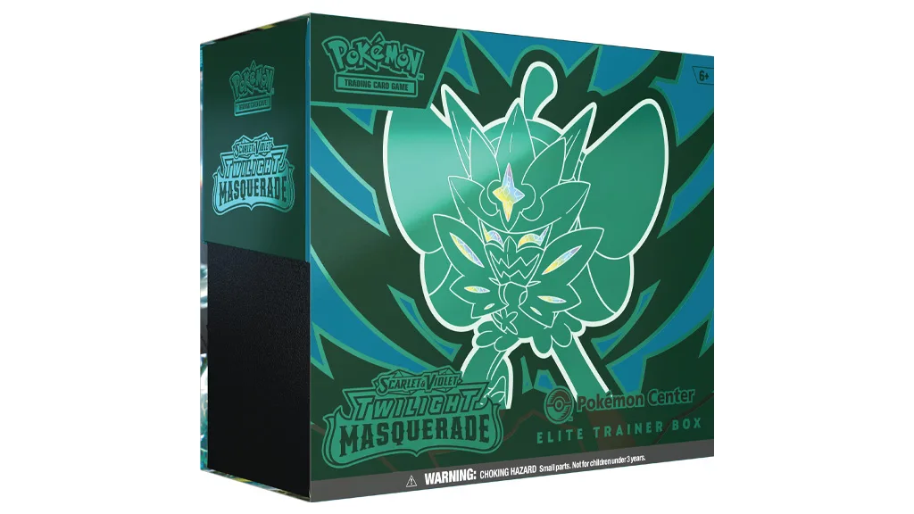 Za više informacija o programu Play! Pokemon i kako pronaći događaje najbliže tebi, posjeti stranicu pokemon.com.Ovo proširenje sadrži 11 Pokémon TCG: Scarlet & Violet — Twilight Masquerade booster paketa, jednu kartu punog listova folije kao promociju koja prikazuje Teal Mask Ogerpon s Pokémon Center logom, jednu kartu punog listova folije kao promociju koja prikazuje Teal Mask Ogerpon, 65 omota za karte na kojima je prikazan Ogerpon, 45 Pokémon TCG Energy karti, vodič za igrače, 6 kockica za brojanje oštećenja, i novčić za bacanje koji se može koristiti na turnirima.
