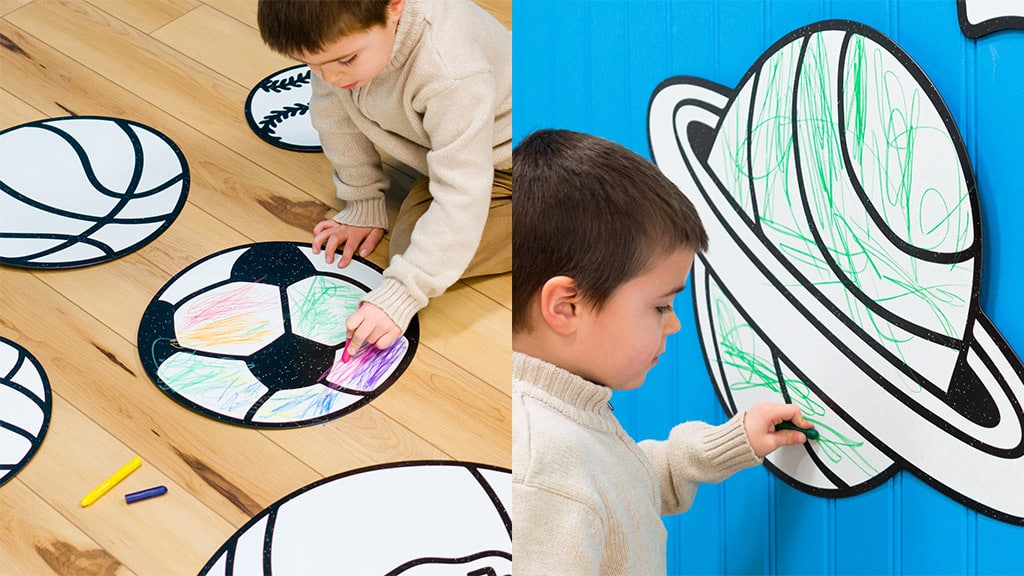 Djeca mogu skupljati razne prazne zidne dekoracije, koje su dostupne u mnogim oblicima i veličinama, kao što su životinje, morska bića, vozila, slova, bajke, priroda, igre, sportovi, cvijeće i još mnogo drugih tema. Svaki poster lako se može staviti i skinuti sa zida, kako bi djeca mogla bojati. Ako djeca crtaju s DoodleFace brisivim voštanim bojicama, uzorci se jednostavno mogu obrisati, tako da mogu uvijek iznova započeti stvaranje. Ova mogućnost potiče kreativnost i slobodno izražavanje kod djece, dok istovremeno mogu učiniti svoju sobu jedinstvenom.
