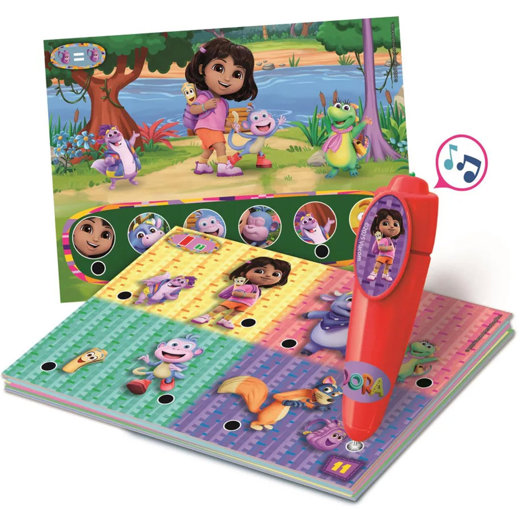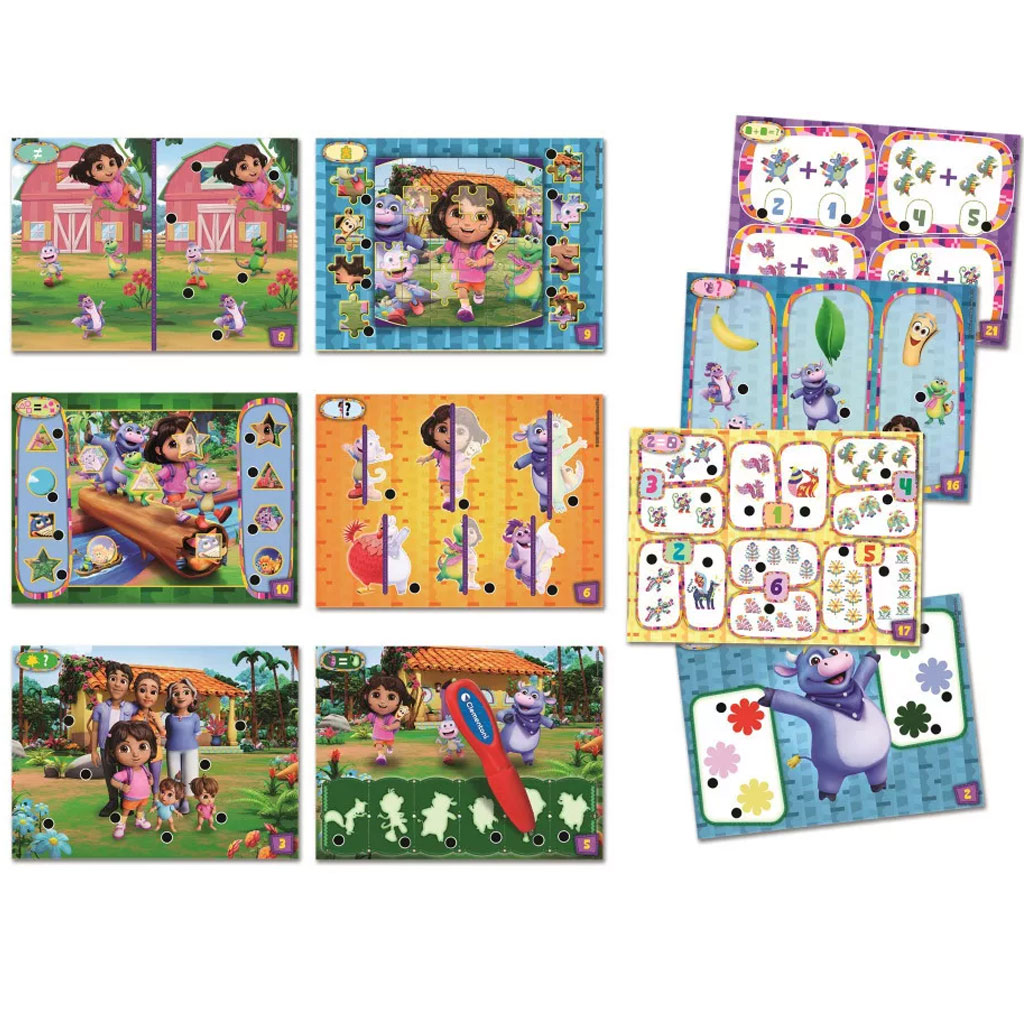 Interaktivna igra "Dora istraživačica Quizzy" odličan je izbor ako želiš razvijati učenje svog djeteta na zabavan način. Na šarenim radnim listovima Dora i njezini prijatelji vode najmlađe kroz različite logičke, opažajne i zadatke brojanja. Interaktivno pero daje povratnu informaciju zvukom i svjetlom, pa dijete može samostalno igrati i učiti. Više od 170 pitanja pomaže napretku, dok igra cijelo vrijeme održava interes.