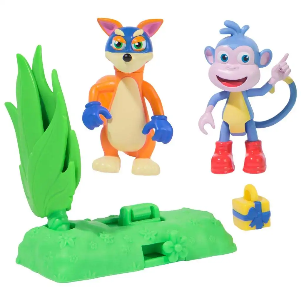 Otkrijte svijet razigranih iznenađenja s Dora istražuje: Swipe & Surprise avanturističkim kompletom! Ovaj set savršen je izbor za svakog malog istraživača koji voli bajkovite avanture i igru uloga. U paketu se nalaze dva omiljena lika, Čizmi (Boots) i Šuškalo (Swiper), oba s pomičnim rukama, tako da možete oživjeti priče na dječjem tepihu ili čak tijekom putovanja.
