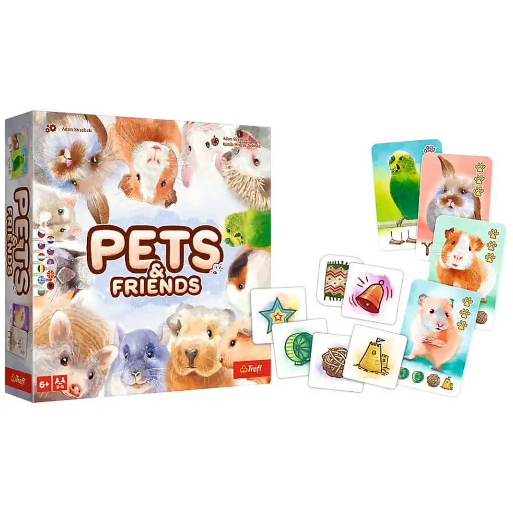 Trefl - Društvena igra Mali kućni ljubimci i njihovi prijatelji je simpatična i zabavna avantura u svijetu malih kućnih ljubimaca, gdje djeca mogu brinuti o svojim omiljenim kućnim ljubimcima, bilo da je to hrčak, zamorac, zec ili čak papiga. Cilj ove igre je osigurati sve potrebne stvari za sreću svakog malog ljubimca, poput igračaka, ukusnih poslastica i dodataka. Tijekom igre, igrači moraju pažljivo skupljati karte i mudro odlučivati što je potrebno kojem ljubimcu kako bi bio što sretniji.