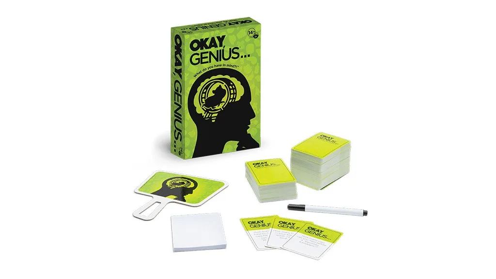U redu, Genius... je društvena igra za upoznavanje u kojoj igrači formiraju mišljenja o smiješnim pitanjima. Jeste li se ikada zapitali koji bi bio savršen broj klaunova koji izlaze iz klaunskog auta? Ili koliko bi vam trebalo susreta s duhovima da biste prodali svoju kuću? Obitelji mogu saznati više o preferencijama jedni drugih pomoću zadataka dostupnih na 300 kartica.
