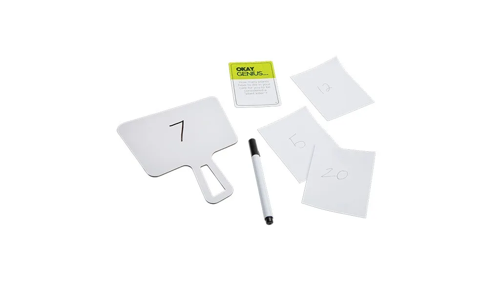 Okay, Genius... jer zahtijeva samo da igrači napišu odgovore na postavljena pitanja. Jedini izazov s kojim se moraš suočiti temelji se na tome koliko dobro poznaješ ljude oko sebe!Igra počinje kada "genij" kruga izvuče karticu s pitanjem i na priloženu suho brisivu ploču napiše svoj odgovor. Ostali igrači koriste odgovorne kartice kako bi pokušali pogoditi kako bi trenutni "genij" odgovorio na pitanje. Igrač čiji je tip najbliži točnom odgovoru osvaja krug. Svaka igra je dizajnirana za najmanje