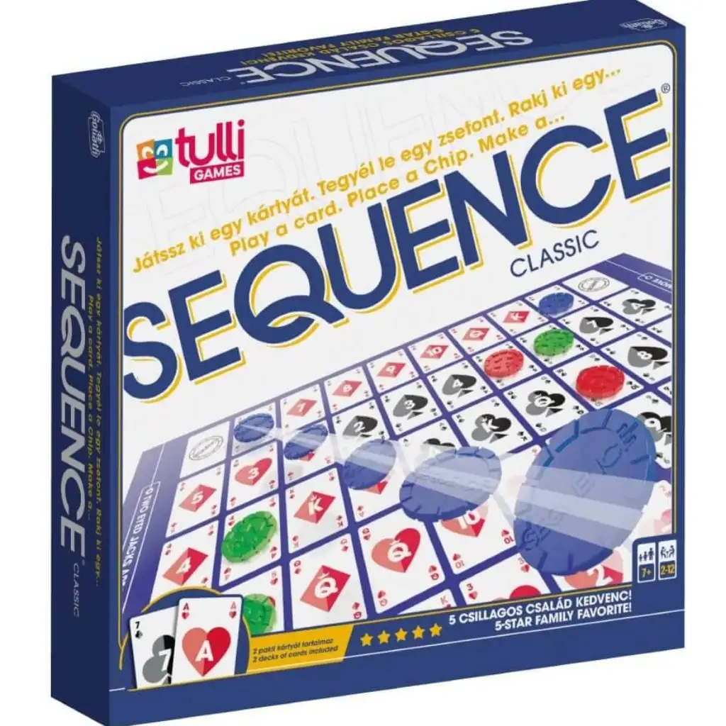 Ako tražiš uzbuđenje, društvena igra Sequence je stvorena za tebe! Pomoću karata koje imamo u ruci trebamo stvoriti nizove na ploči vodoravno, okomito ili dijagonalno. To možemo postići uz pomoć karata i žetona, ili spriječiti druge u tome. Može se igrati u paru ili u timovima.