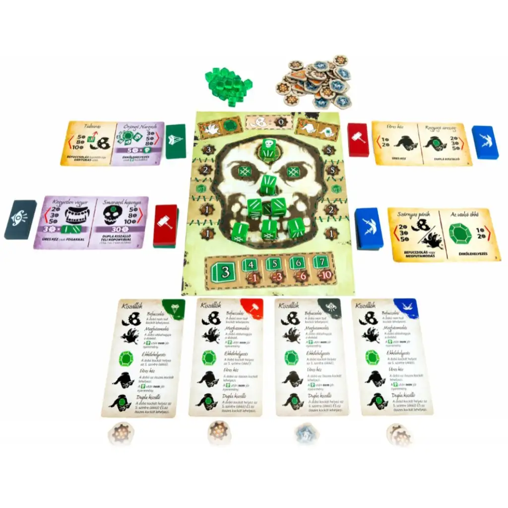 Sadržaj: ploča s lubanjom, kockice od kostiju, tokeni zupčanika, karte likova i karte za klađenje