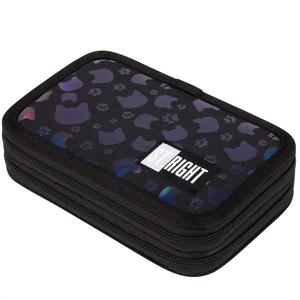 St.Right Black Cats dvospratna pernica idealan je izbor za svakog malog ljubitelja mačaka! Ova pernica s jedinstvenim crnim osnovnim uzorkom s mačkama i praktičnim dizajnom zasigurno će postati omiljena među djecom. Pernica nije samo stilska, već i izuzetno praktična, pomažući u svakodnevnoj školskoj pripremi.