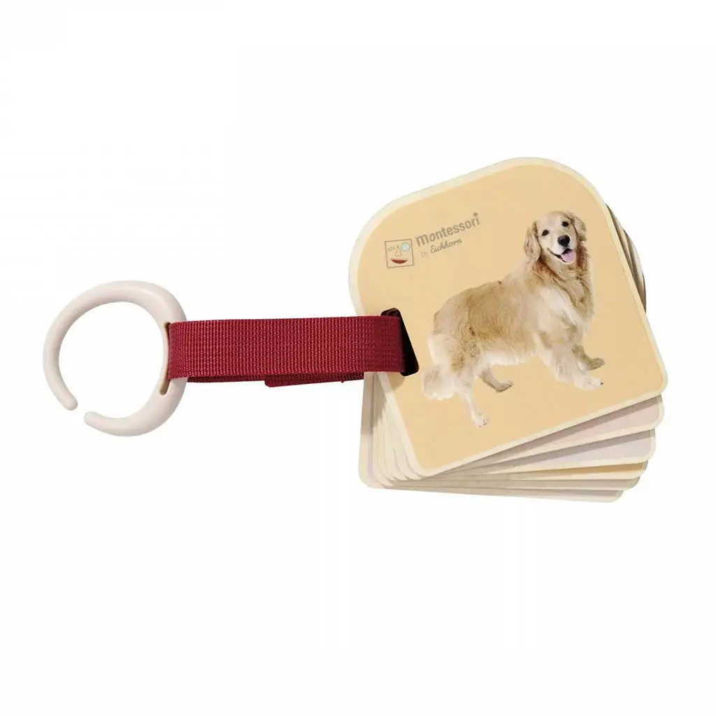 Na svakoj stranici nalazi se stvarna fotografija domaćih životinja i insekata, kao što su pas, leptir ili puž – tako djeca već rano mogu upoznati slike iz stvarnog svijeta, što pomaže razvoju njihovih sposobnosti opažanja. Kartice su izrađene od izdržljivog drva, sa zaobljenim rubovima, kako bi bile sigurne i za najmanje ruke.