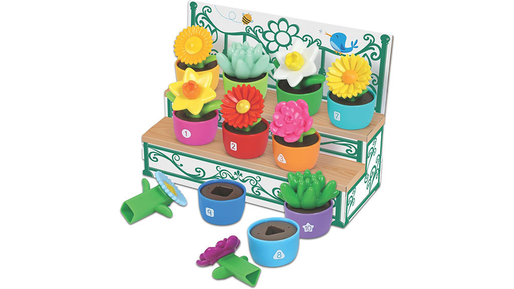 Djeca uče o važnosti održivosti i vrtlarstva, dok razvijaju svoje fine motoričke vještine i koordinaciju ruka-oko. Upari 10 biljaka živih boja s odgovarajućim cvjetnim posudama prema njihovom obliku. Savršeno za razvoj vještina prepoznavanja boja i brojanja, kao i za praktično učenje. Sastojci su izrađeni od reciklirane plastike i uključuju vodič prepun ekološki prihvatljivih činjenica. Osim toga, igra pomaže djeci razumjeti kako se načela održivosti mogu primijeniti u svakodnevnom životu i potiče ih na kreativno razmišljanje o zaštiti okoliša.