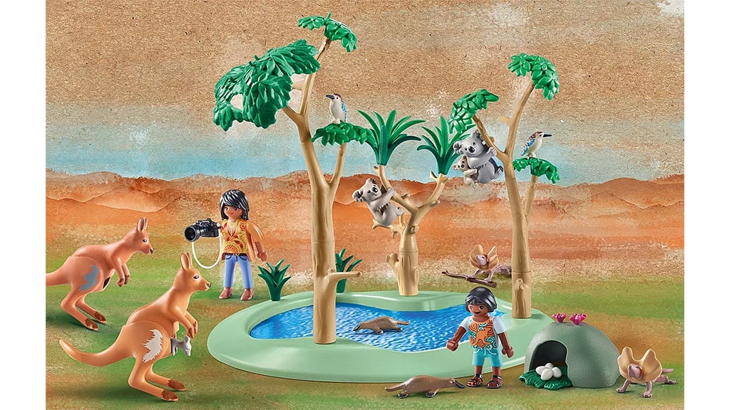 Ovaj set za igru poziva djecu na avanturu punu životinja u australsku divljinu. Set sadrži dvije mini figurice, klokane, koale, guštere s ovratnikom i druge simpatične australske divlje životinje koje se okupljaju oko pojilišta. Izrađen je od više od 80% reciklirane plastike, tako da djeca mogu pomoći spasiti Zemlju dok otkrivaju njezina čuda!