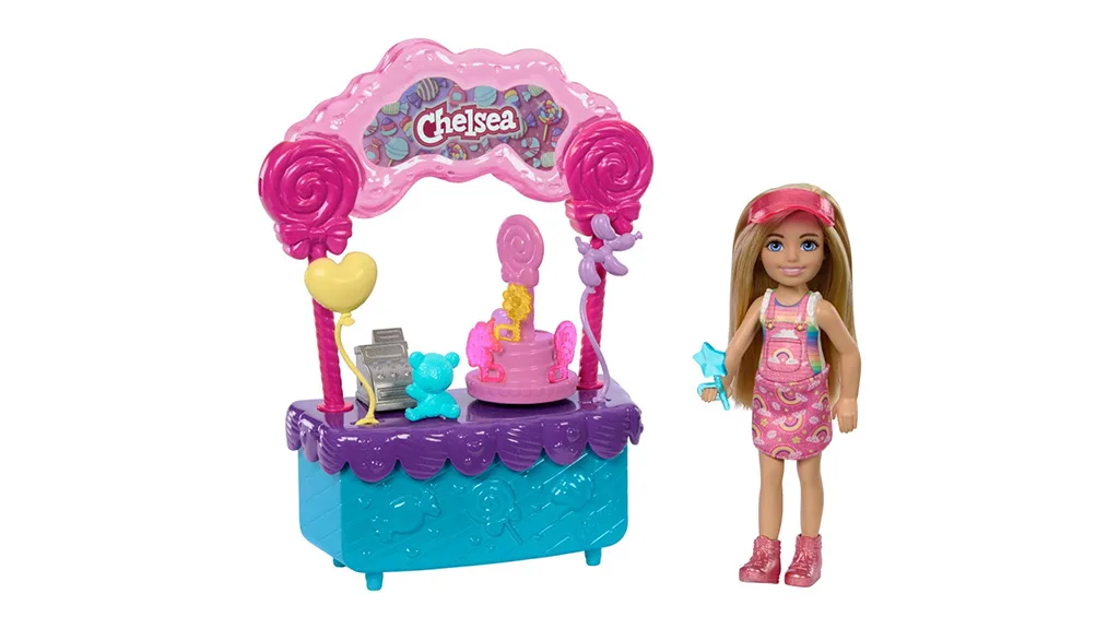 Djeca mogu uživati u slatkom poslastici s Chelsea i njezinim setom igračaka Lollipop Candy Stand. U slatkoj ružičastoj suncobrani i odjeći, Chelsea vodi svoj štand s lizalicama, slatkim plišanim medvjedićem i zabavnim balonima.