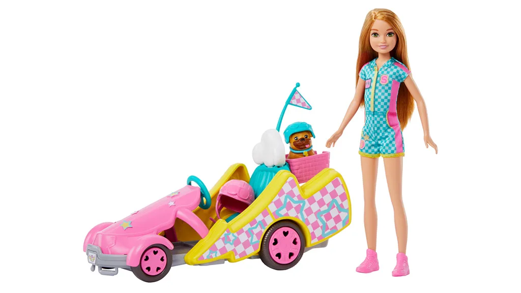 Djeca mogu ući na stazu s ovom Stacie lutkom i njezinim gokartom. Stacie je spremna za brzinu s svojom utrkačkom odjećom i malim psom partnerom. Igračka uključuje lutku, malog psa, gokart, priključivu zastavu, priključivu košaricu, paket naljepnica i tri dodatka.