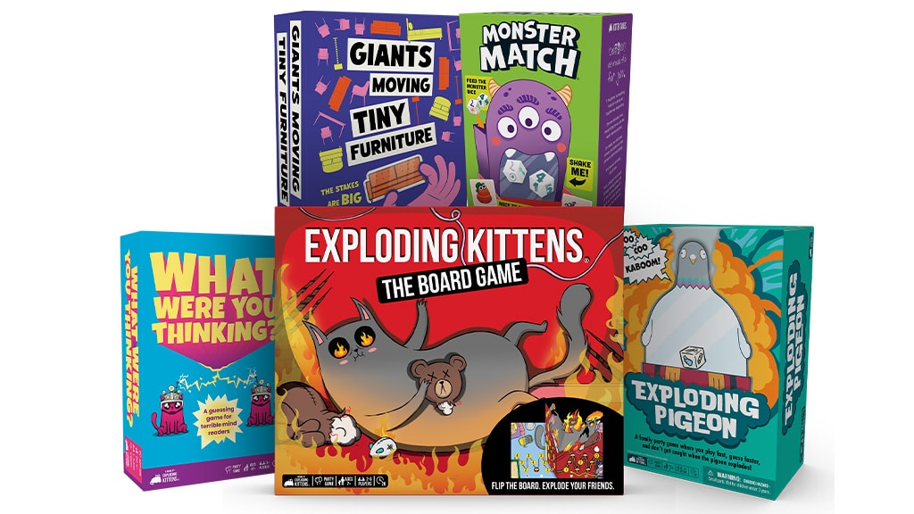 Popularna igra **Eksplodirajuće mačke** ovog ljeta slavi svoj 10. rođendan s društvenom igrom adaptiranom prema omiljenoj kartaškoj igri. Tvrtka koja stoji iza kaosa donosi četiri nova prijatelja za obiteljske večeri igara: **Što si mislio?**, **Divovi pomiču male komade namještaja**, **Eksplodirajuće golubice** i **Monster Match**, koji je novi član kolekcije Kitten Games. Ove nove igre obećavaju uzbudljiva i zabavna iskustva za sve uzraste i zajamčeno će uljepšati obiteljska okupljanja. Društvena verzija Eksplodirajućih mačaka dodaje novu dimenziju igri, omogućujući igračima da se još više urone u svijet igre. Tijekom dizajniranja igara, kreativnost i humor imali su istaknutu ulogu, pružajući svima nezaboravno iskustvo.Društvena igra "Eksplodirajuće mačke" stiže na police 21. srpnja. Preuređena, izuzetno natjecateljska igra potiče igrače starije od sedam godina da se natječu do kraja staze, koristeći strateške akcijske karte za sabotiranje protivnika ili izbjegavanje katastrofe. Sudionici također mogu izazvati preokret ploče, koji transformira sva polja na ploči kako bi postavili zamke ili sklopili saveze. Društvena igra je prikladna za 2-6 igrača i traje oko 20 minuta.