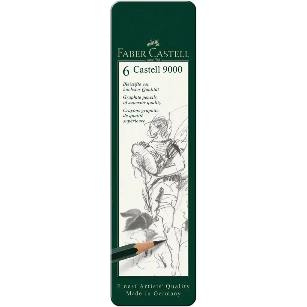 Faber-Castell: Castell 9000 grafitna olovka set od 6 komada u metalnoj kutijiFaber-Castell: Castell 9000 grafitna olovka set od 6 komada u metalnoj kutiji