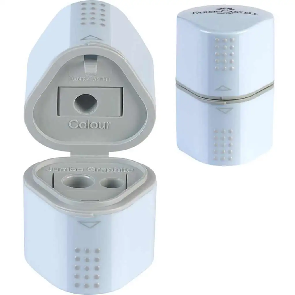 Upoznajte se s Faber-Castell Grip 2001 Trio šiljilom, koji će biti praktičan i stilski dodatak priboru vašeg djeteta za pisanje. Ovaj šiljilo plave boje ima tri različita otvora za olovke različitih debljina: jedan za standardne olovke, jedan za tanje grafitne olovke i jedan za deblje, jumbo olovke. Zona "Grip" na vrhu šiljila osigurava upotrebu bez klizanja, dok spremnik hvata strugotine, čime se radni stol može održavati čistim. Odgovarajući poklopac sprječava rasipanje strugotina. Visokokvalitetne oštrice od nehrđajućeg čelika osiguravaju glatko i ravnomjerno šiljenje svaki put.