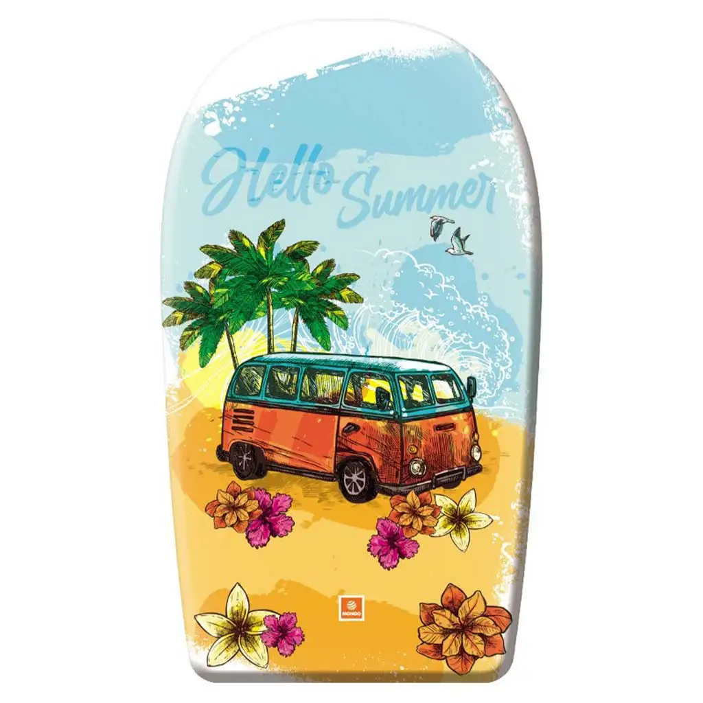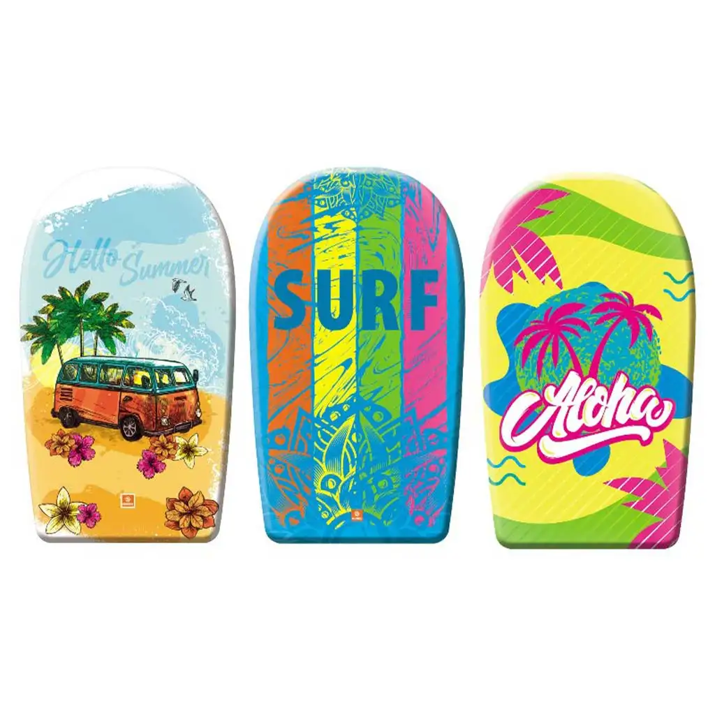 Podignite svoje iskustvo na plaži s ovom Fantasy plivačkom daskom, koja sa svojom veličinom od 84 cm predstavlja savršen izbor za stariju djecu i tinejdžere! Varijanta Hello Summer prikazuje klasični retro kombi s palmama i cvijećem, stvarajući pravi ugođaj plaže. Dizajn Surf ukrašen je živim bojama i motivima surfanja, pružajući dinamičan izgled. Varijanta Aloha s tropskim palmama i veselim natpisima dočarava havajski duh. Daska je izrađena od čvrste pjene koja osigurava odgovarajuću stabilnost i uzgon. Idealna je pomoć za vježbanje plivanja, privikavanje na vodu ili plutanje na valovima. Laka je i jednostavna za rukovanje, tako da je djeca mogu lako koristiti. Bilo na morskim valovima ili u bazenu, ova daska jamči dodatnu zabavu u vodi. Odaberite između različitih dizajna i neka avantura počne! Cijena se odnosi na jedan proizvod koji se nasumično odabire!