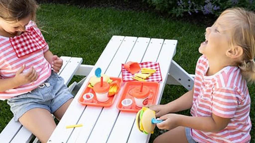Fat Brain Toys i Pretendables proširuju svoj asortiman s novim elementima: hamburgerima i pomfritom. Ovaj set od 24 dijela sadrži sve što djeca trebaju za pripremu savršenog zamišljenog fast food hamburger menija. Više od običnog seta za pripremu hrane, jer je pun zabavnih elemenata koje možete dodirnuti i vidjeti. Filc pomfrit je mekan, a poklopac na vrhu pića opremljen je gumbima za pritiskanje, da spomenemo samo neke. Djeca će obožavati igru restorana i vrijeme obroka s ovim interaktivnim setom. Nadamo se da je obitelj gladna!