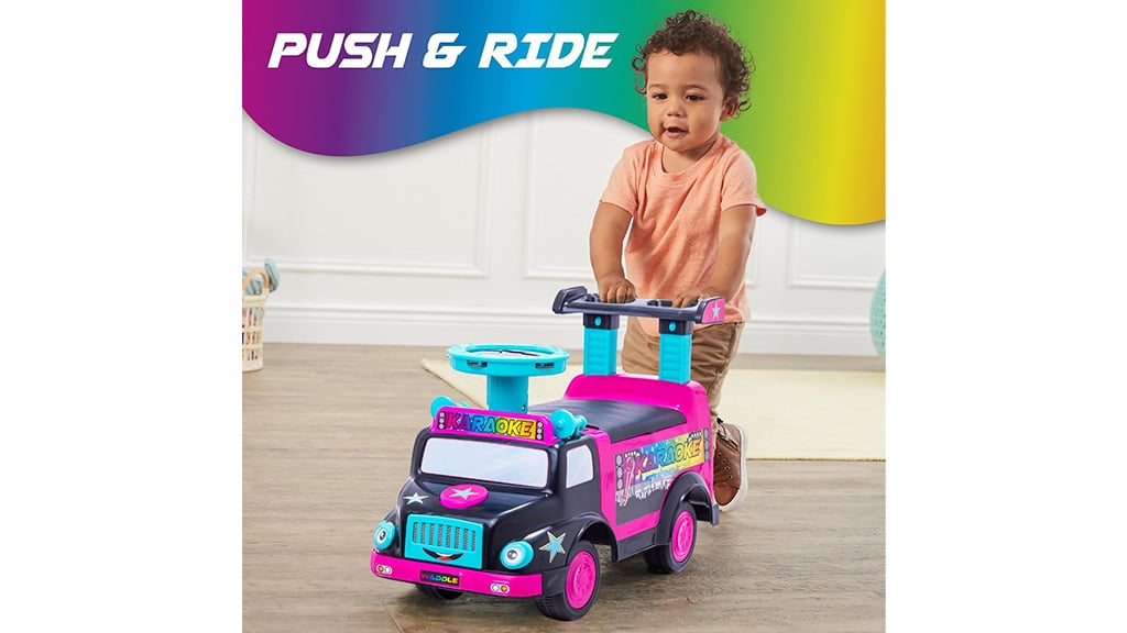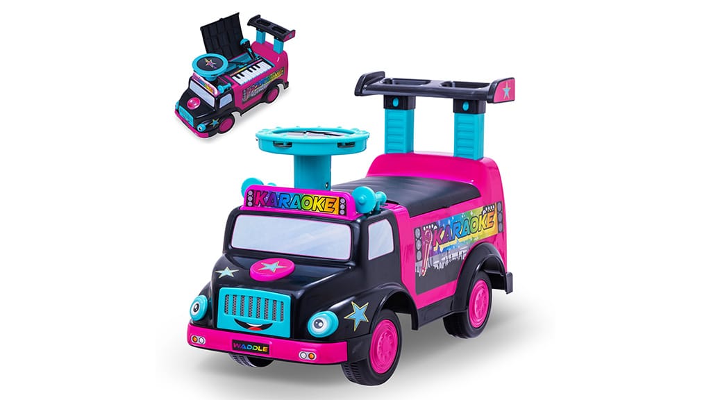 Mala djeca mogu se zabavljati bilo gdje uz pomoć Waddle Karaoke vozila na nožni pogon. Ovo vozilo pruža glazbenu zabavu s ugrađenim mikrofonom, klavijaturom i bubnjevima. Igračka automobil, dizajniran za djecu od 1 do 3 godine, također ima svjetla i zvukove kada djeca pritisnu gumb na haubi. Ova igračka nije samo zabavna, već razvija kreativnost i glazbeni osjećaj djece, dok ih potiče na kretanje. Šarena svjetla i veseli tonovi zajamčeno će zadržati pažnju mališana i pomoći u razvoju njihovog osjećaja za ritam.