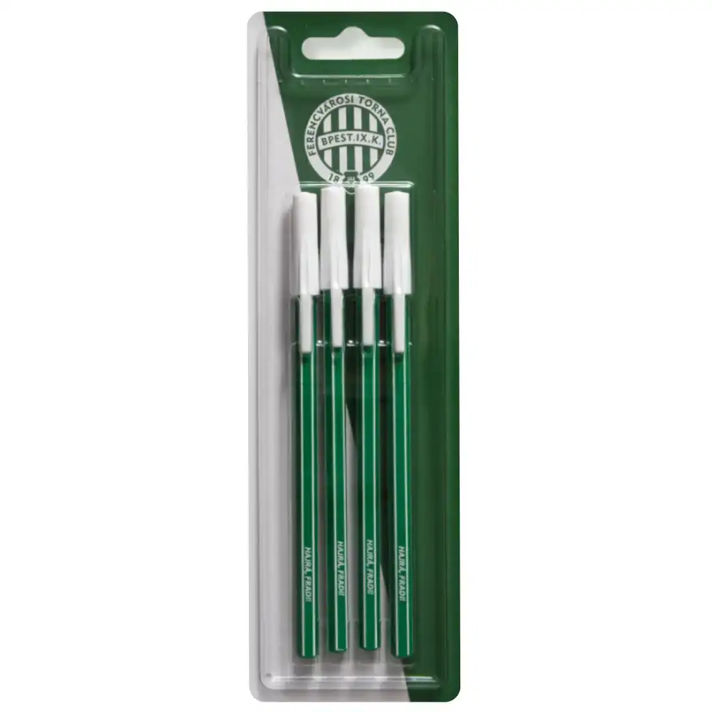 Fradi kemijska olovka set od 4 komada pravi je osnovni dodatak u pernici svakog Fradi navijača! Zelene olovke imaju jednostavan natpis „Hajrá Fradi!”, što ih čini ne samo praktičnima, već i motivirajućima za svakodnevno pisanje u školi ili kod kuće. Olovke s kapicom pouzdano se zatvaraju, tako da se ne razmazuju u torbi. Zbog laganog pisanja idealne su za bilježenje, domaće zadaće ili čak kreativno pisanje. Savršen izbor za sve uzraste koji žele pokazati svoju strast prema Fradiju u svakodnevnom životu.