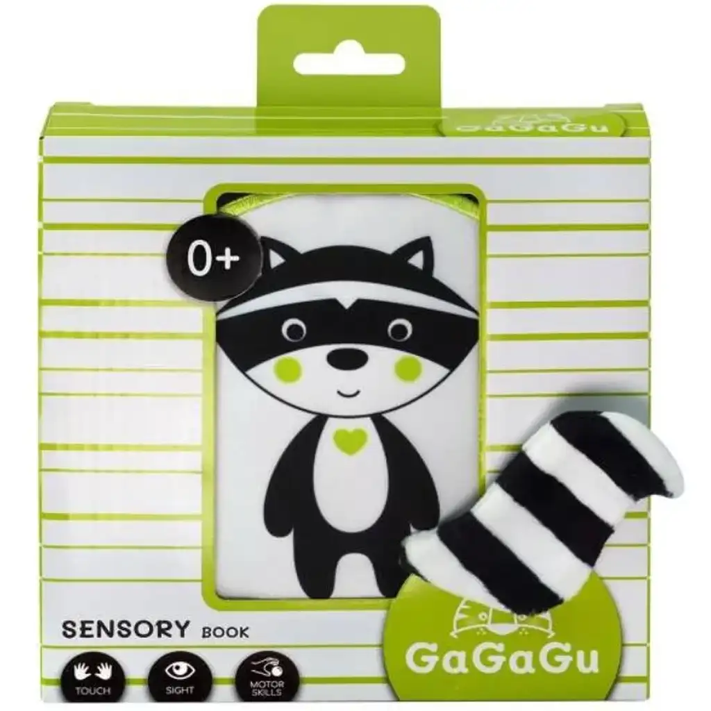 Razvojna knjiga za bebe GaGaGu s uzorkom rakuna savršena je prva knjiga za najmlađe, koja na razigran način podržava senzorno razvijanje. Ova mekana, tekstilna knjiga za bebe nije samo zabavna, već pomaže razvoju vida, dodira i motoričkih vještina bebe, dok je sigurna za korištenje već od rođenja.