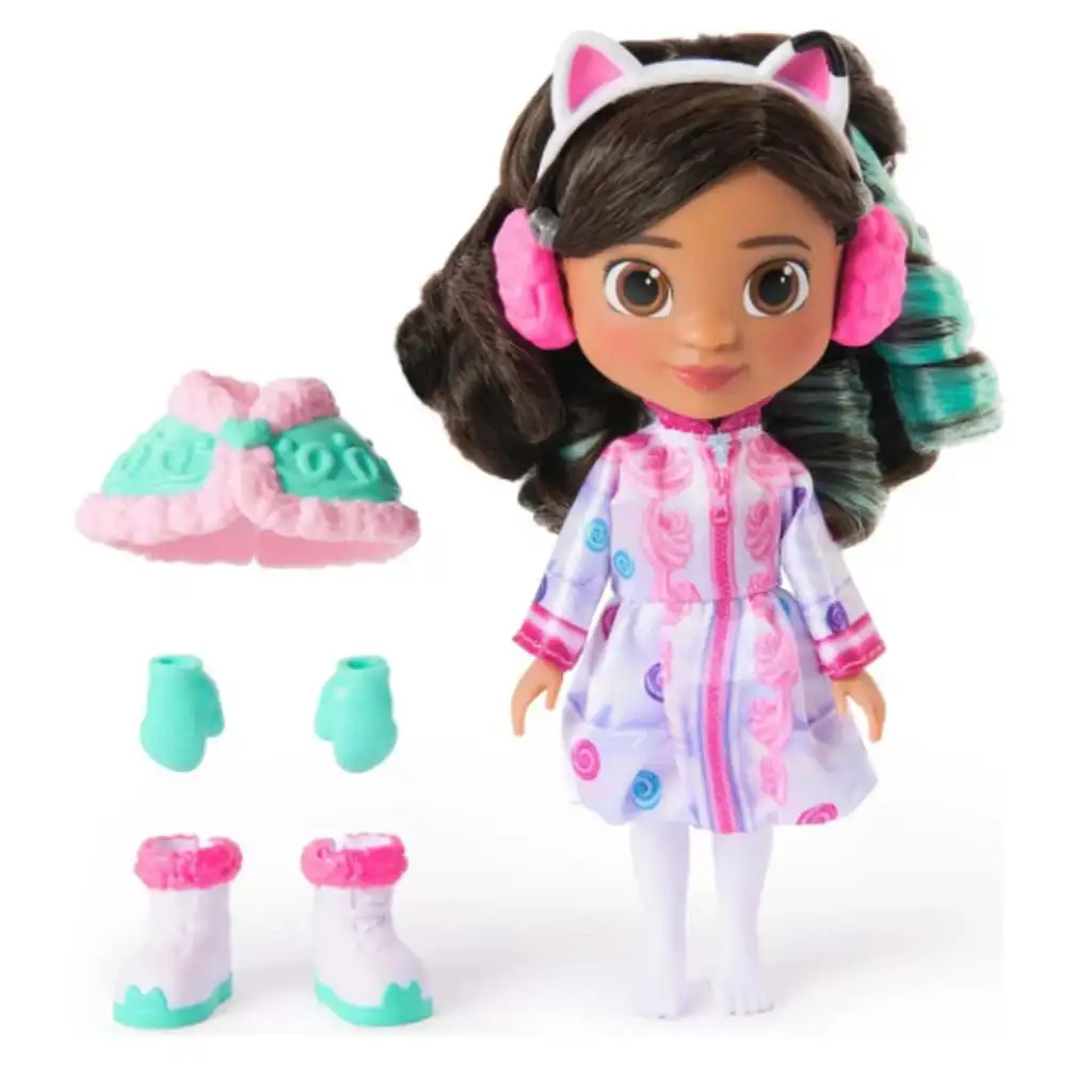 U paketu se nalazi više zamjenjivih dodataka, uključujući mint-zelenu i ružičastu suknju, par cipela i majicu, pa djeca mogu presvlačiti Gabby kako požele i osmisliti vlastite slatke priče. Gabby ima pomične udove, pa se lako može postavljati u razne situacije za igru, bilo za pečenje kolača u kuhinji ili posjet Zemlji slatkiša.