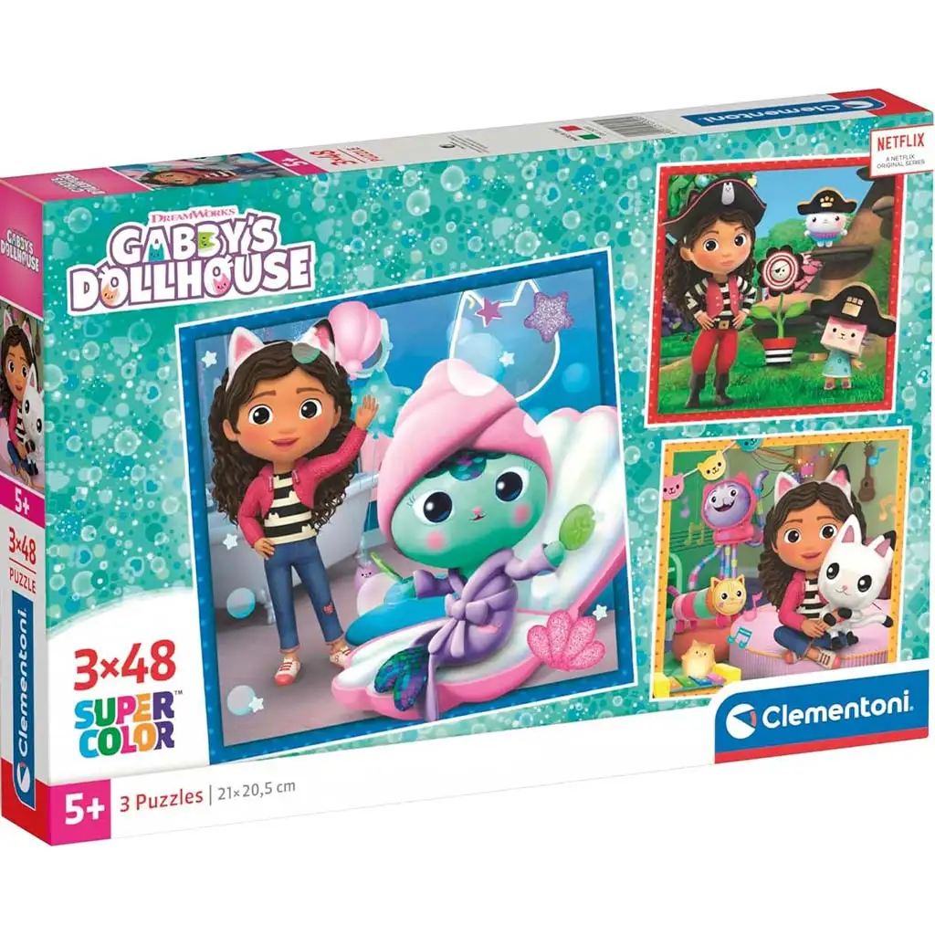 Otkrijte Gabijevu čarobnu kućicu za lutke iz popularne serije na Netflixu s ovim setom slagalica Supercolor od 3x48 komada, koji nudi Clementoni. Uz Gabi i njene slatke mačje prijatelje, možete istraživati ovaj šareni i živopisni svijet u društvu s piratima i raznim životinjicama. Slagalica je savršen alat za razvoj fine motorike i sposobnosti rješavanja problema kod malih. Kvalitetni, debeli i lako hvataljivi komadi pružaju djeci izvrsno iskustvo dok se igraju učeći boje, oblike i koncentraciju. Idealno za predškolsku djecu i odlična prilika za kvalitetno provedeno vrijeme s obitelji.