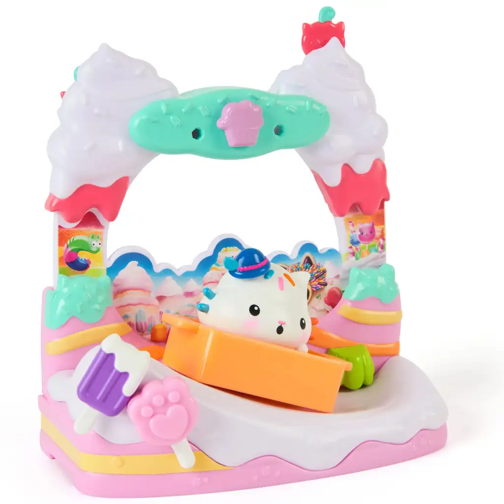 U setu se nalaze figurica Mačkice Keksićke i slatki balkon, ukrašen sjajnim detaljima sladoleda i bombona. Tobogan, dekoracije sa sladoledom i šareni dodaci potiču djecu da ponovo dožive scene iz crtića ili da izmišljaju vlastite priče. Mačkica Keksićka nosi jedinstvene dodatke, a igra je još zabavnija zahvaljujući pokretnim elementima.