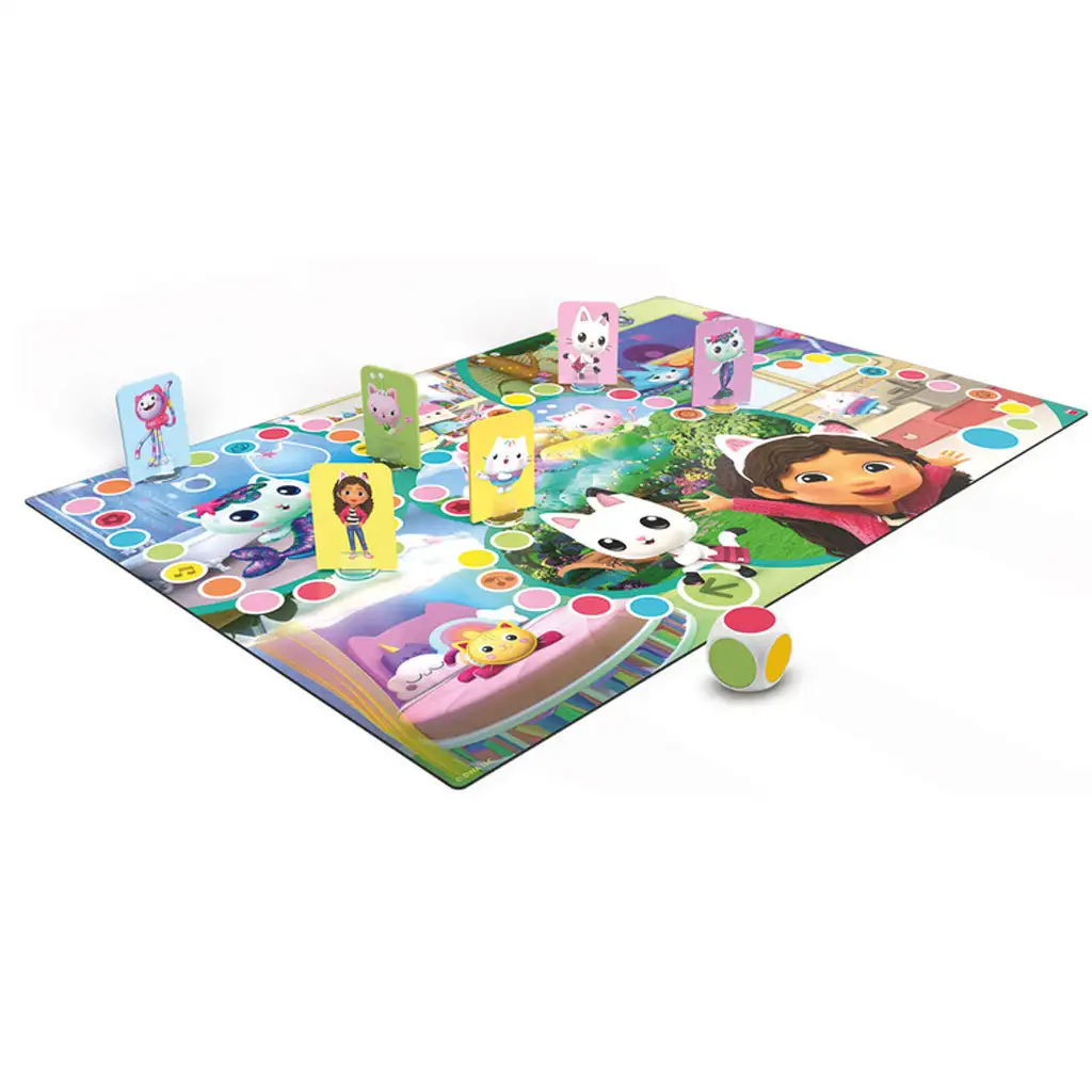 Tijekom igre djeca se kreću po šarenim poljima uz pomoć kocke te mogu preuzeti razne uloge: Mačja djevojka, Točkasta maca, Mačka-sirena, Pudinga mačka, DJ Medo ili Gabi čekaju na svoja mjesta na ploči. Cilj igre je prvi doći do ciljnog polja, upoznajući tako sobe lutkarske kuće i svijet serije. Vesele boje, poznati likovi i jednostavna pravila jamče da će i najmlađi s radošću igrati ovu igru.