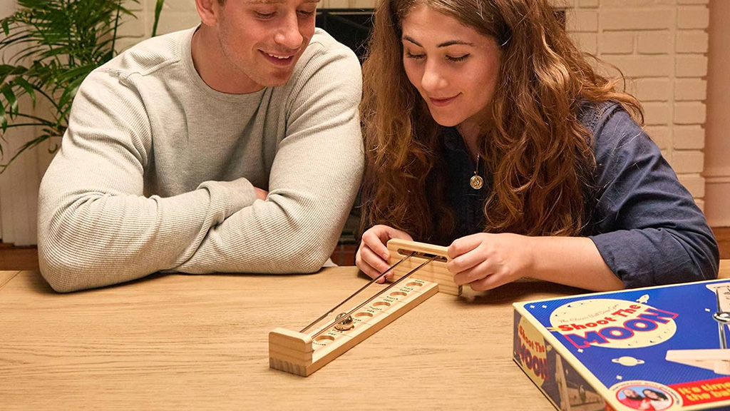 Pucaj na Mjesec prva je od tri igre i retro favorit u kojem morate usmjeriti metalnu kuglu u različite planetarne rupe kako biste osvojili bodove. Sljedeća igra, Gradnja tornja, zahtijeva od igrača da balansiraju geometrijske oblike na nestabilnoj podlozi. Posljednja igra u triju je Kollide; u njoj igrači moraju natjecati se kako bi prvi postavili sve svoje magnete na igralište bez da se dodiruju.„Najuzbudljivija stvar u ovim igrama za nas je to što nude svestranost” – kaže Christopher James iz Games4Two. „Ljudi bilo koje dobi mogu igrati ove igre i odlično se zabaviti. Bilo da se radi o obiteljskoj večeri, spoju ili večeri s prijateljima, svi koji igraju će se sjajno zabaviti.”U igri "Shoot the Moon" djeca trebaju imati sigurne ruke za pobjedu! Moraju pažljivo pomicati metalne šipke kako bi mjesečevu loptu spustili na pravo mjesto—igrači osvajaju bodove ovisno o tome u koju metu uspiju ubaciti mjesečeve udarce. Igra razvija spretnost ruku i koncentraciju, dok pruža uzbudljiv izazov za sve uzraste. Savršen izbor za obiteljska okupljanja i prijateljska natjecanja.