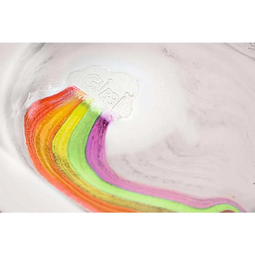 Iskustvo nije samo ugodno za oči, već je i puno senzacija, jer dodirujući šarenu vodu, djeca mogu igrajući se otkrivati različite osjećaje. Korištenje kupke je jednostavno i sigurno, tako da je mališani mogu koristiti samostalno uz nadzor roditelja. Stavite Glibbi Boom u kadu i gledajte kako duga oživljava pod vodom!