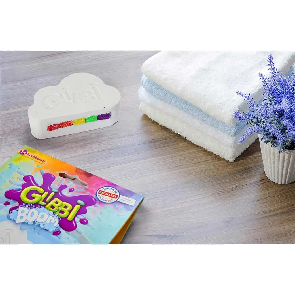 Otkrijte Glibbi Boom kupku u obliku oblaka od Simba Toys, koja donosi zaista čarobno iskustvo u vašu rutinu kupanja! Ova posebna kupka ne samo da se spektakularno otapa u vodi, već i crta šarenu dugu među pjenušcima, pretvarajući vašu kadu u bajkoviti, šareni svijet. Glibbi Boom kupka sigurno će razveseliti kupaonicu i očarati djecu, dok ostaje sigurna za njihovu kožu zahvaljujući sastojcima prijateljskim prema koži.