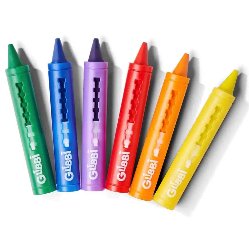 Glibbi set voštanih bojica za vodu nudi fantastično iskustvo za djecu tijekom kupanja! Šest živopisnih voštanih bojica posebno je dizajnirano kako bi mališani mogli kreativno ukrasiti površinu kade ili pločica dok se veselo prskaju. Kreacije se lako ispiru vodom, tako da nema više brige o tvrdokornim mrljama. Ergonomičan dizajn bojica osigurava udobno držanje za male ruke, tako da čak i najmlađi mogu uživati u crtanju.