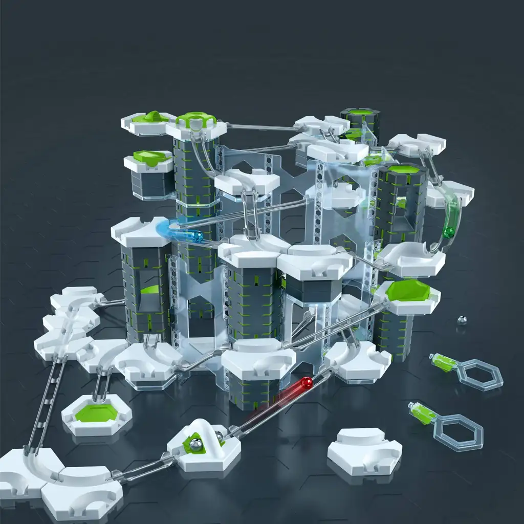 GraviTrax Pro početni set pruža revolucionarnu priliku svima koji žele podići svoju igru na višu razinu u svijetu kugličnih staza. Ovaj novi i uzbudljivi set s akcijskim elementima omogućuje izgradnju struktura u dimenziji visine i stvara mogućnosti na koje možda ranije niste ni pomislili.