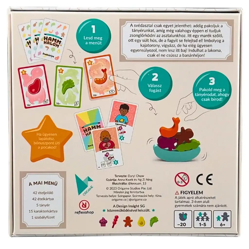 Hammhalom društvena igra je zabavna i zahtijeva spretnost, obiteljska igra u kojoj igrači trebaju nagomilati što više hrane na svoj tanjur, a da se ne prevrne! Tko može prikupiti najveću gozbu bez da se toranj sruši?