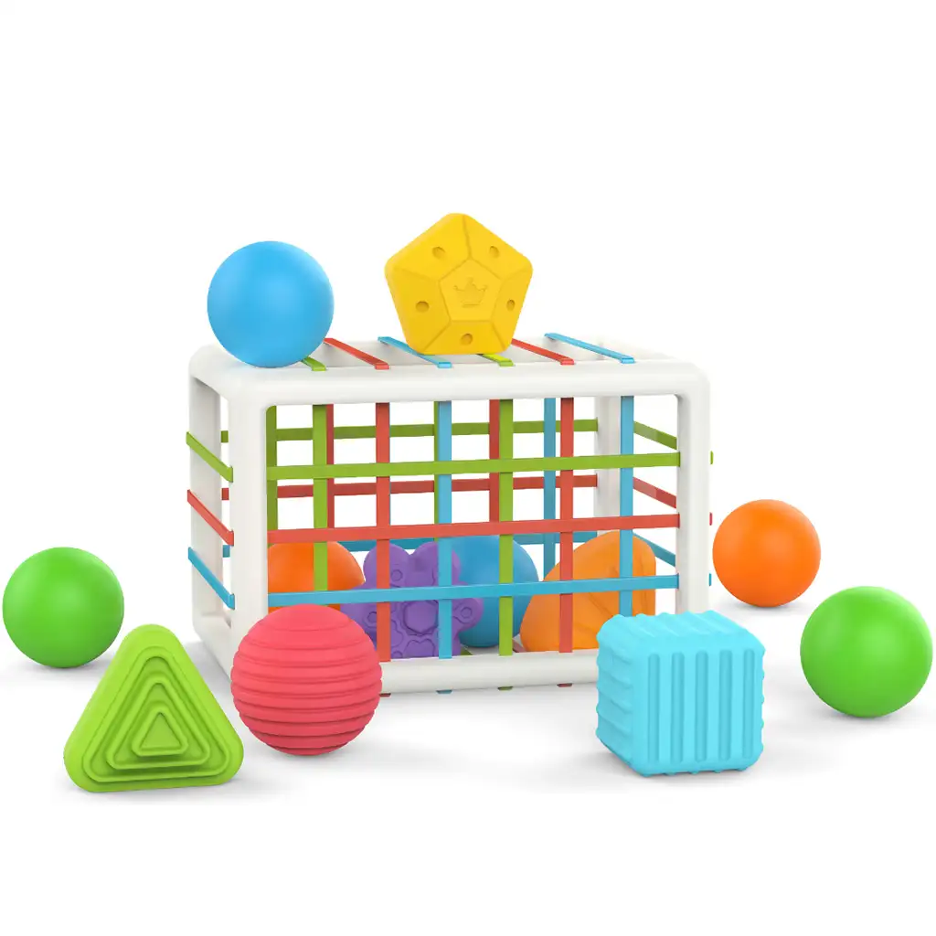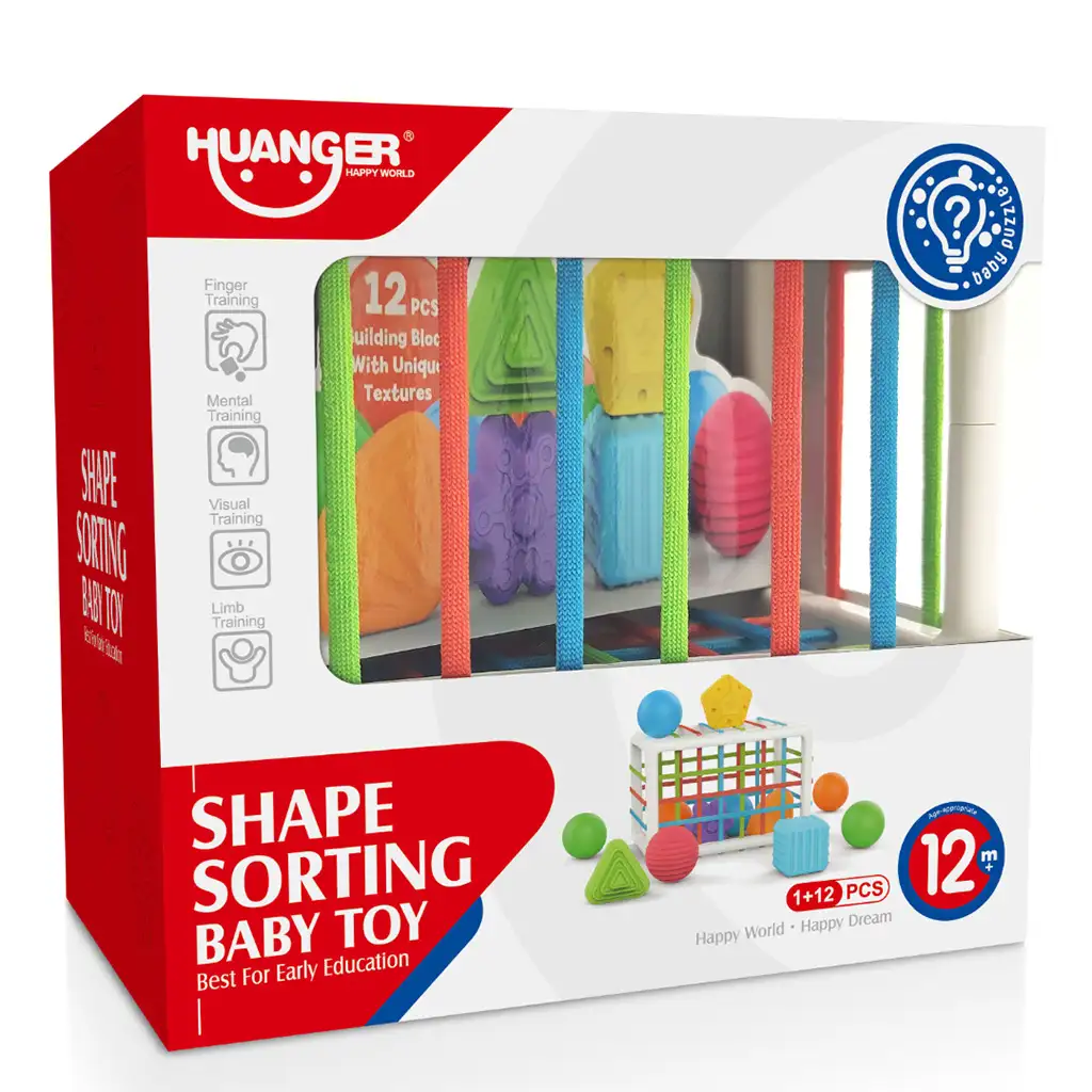 Igračka dolazi s ukupno 12 različitih oblika, koji se razlikuju po boji, dodiru i veličini. Zadatak je te oblike pravilno umetnuti u pravokutni okvir kroz odgovarajuće otvore. Ova igra ne samo da razvija spretnost i fine motoričke vještine, već također pomaže djeci u prepoznavanju boja i oblika.