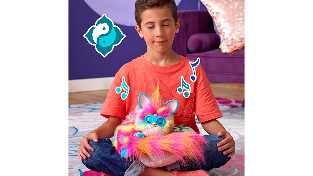 Hasbro donosi čaroliju Furby Land-a u dječju sobu uz pomoć DJ Furby Rainbow-a! Ova potpuno nova, plišana Furby igračka s pet različitih načina igre povećava zabavu, nudeći više od 1000 mogućih varijacija igre. Pet načina igre su: Glazba, Igraj se sam, Igre za zabavu, Vrijeme za odmor i Vrijeme za prijatelje. Uz toliko mogućnosti, djeca od 6 godina i starija mogu izabrati vlastitu avanturu s Furbyjem.Bilo da stvaraju jedinstvene melodije, zabavljaju se uz pjesme na Furbish jeziku, otkrivaju više od 20 igara ili se opuštaju uz vođene joga vježbe, ovaj Furby sve zna! Prebacivanje između načina igre je jednostavno: samo treba pritisnuti srcoliki dragulj na Furbyjevom licu. Pomoću tipki na prednjim šapama Furbyja mogu se odabrati različite igre, a može se igrati i sa svjetlećim trbuščićem kako bi vidjeli Furbyjeve smiješne reakcije.